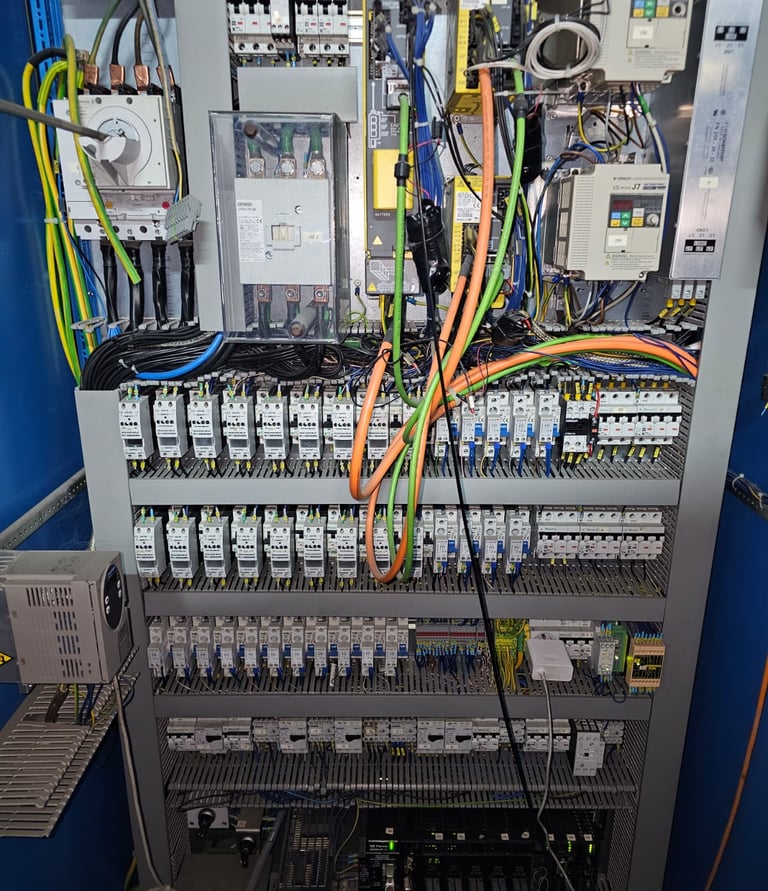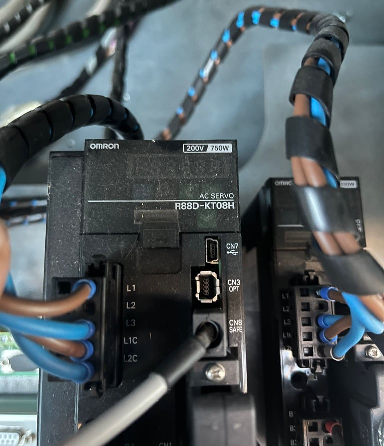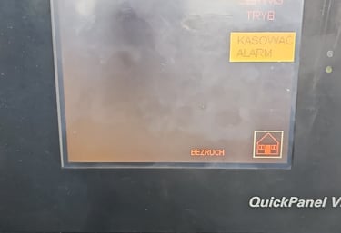 Maszyna po przeróbkach starego typu przez różne firmy. błędy programistyczne w serwonapędach, brak zabezpieczeń, problemy z autostartem i zastrzymywaniem się maszyny w bezruchu