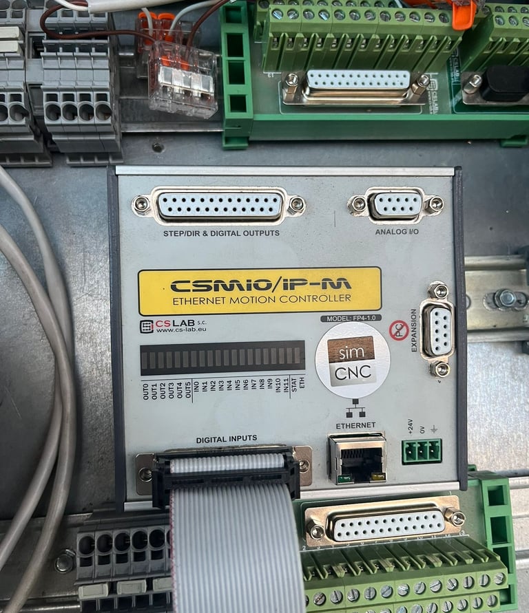 Modernizacja maszyny z wymianą sterownika "TASMIO" na na nowy sterownik CSMIO/ IP-M polskiej firmy cs-slab wraz z serwonapędami X,Y,Z,A i podłączeniem stref powietrza